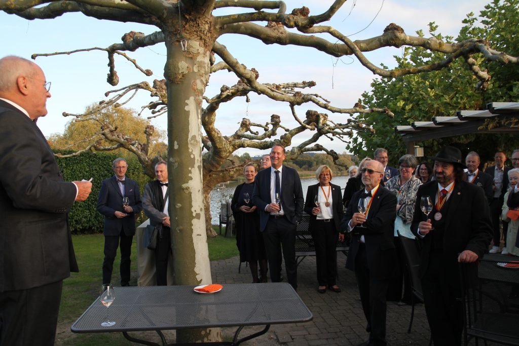 Das Fest begann mit einem Empfang auf der Seeterrasse des Hotels bei herrlichem Wetter und einem grandiosen Blick über den Überlinger See zur Insel Mainau und den Bodanrück. Unter den zahlreichen Teilnehmern konnte Ordensmeister Peter Eitze unseren Ehrenordensmeister Helmut Hengstler und Elke Hengstler-Friedrich, unser Ehrenmitglied Dr. Volker Brömel und Frau Annemarie Brömel und das älteste anwesende Mitglied der Weinbruderschaft, Lothar Strohmaier in Begleitung von Hannelore Lamprecht, herzlich begrüßen. In einer kurzen Ansprache ging Peter Eitze auf die traditionsreiche Geschichte der Weinbruderschaft ein und konnte feststellen, dass die ursprünglichen Grundsätze und Vorstellungen im besten Sinne weiterentwickelt wurden und bis heute ihre Gültigkeit nicht verloren haben. Die Anwesenden erhoben das Glas auf unsere Weinbruderschaft, dass sie weitere 60 Jahre lebe, blühe und gedeihe.
