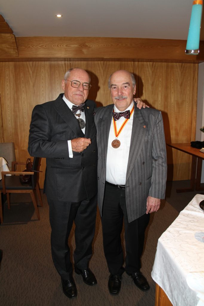 Der Genuss des exzellenten Menüs wurde durch weitere Höhepunkte des Abends ergänzt. Ordensrätin Gerda Held und ihr Mann Rudi erhielten für zehnjährige Mitgliedschaft die Ehrennadel in Silber, Elfriede Siebenhaller und ihr Mann Klaus erhielten für zwanzigjährige Mitgliedschaft die Ehrennadel in Gold.
